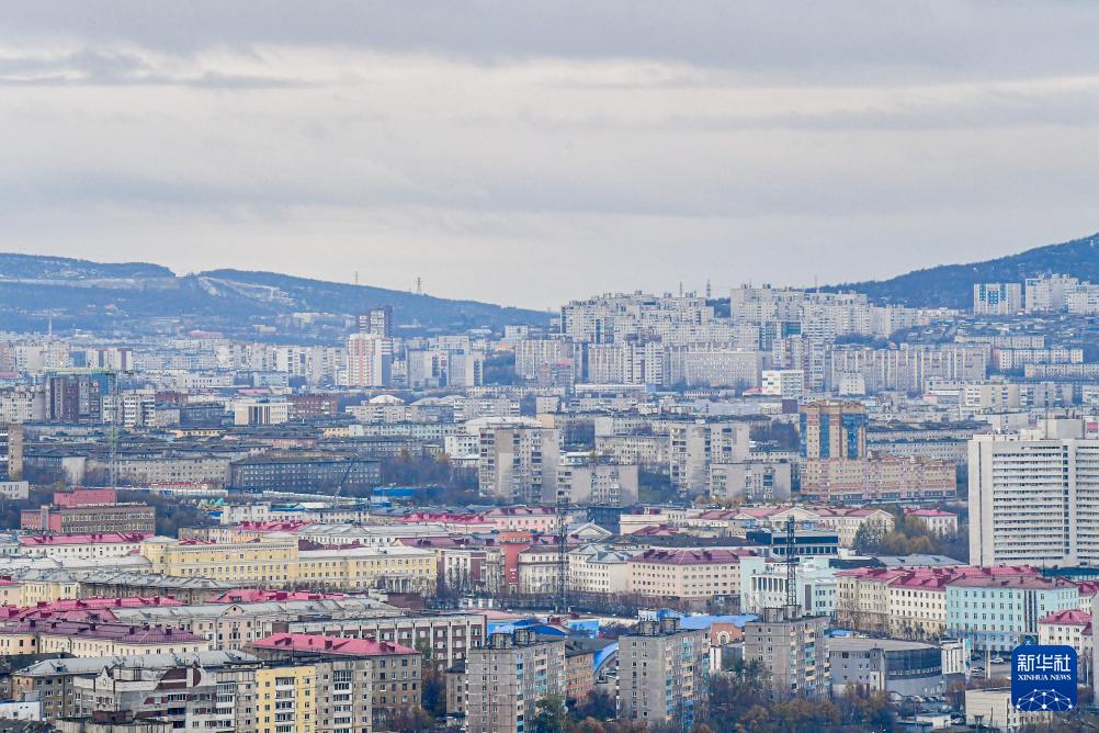 这是10月23日在俄罗斯摩尔曼斯克市拍摄的城市风光。