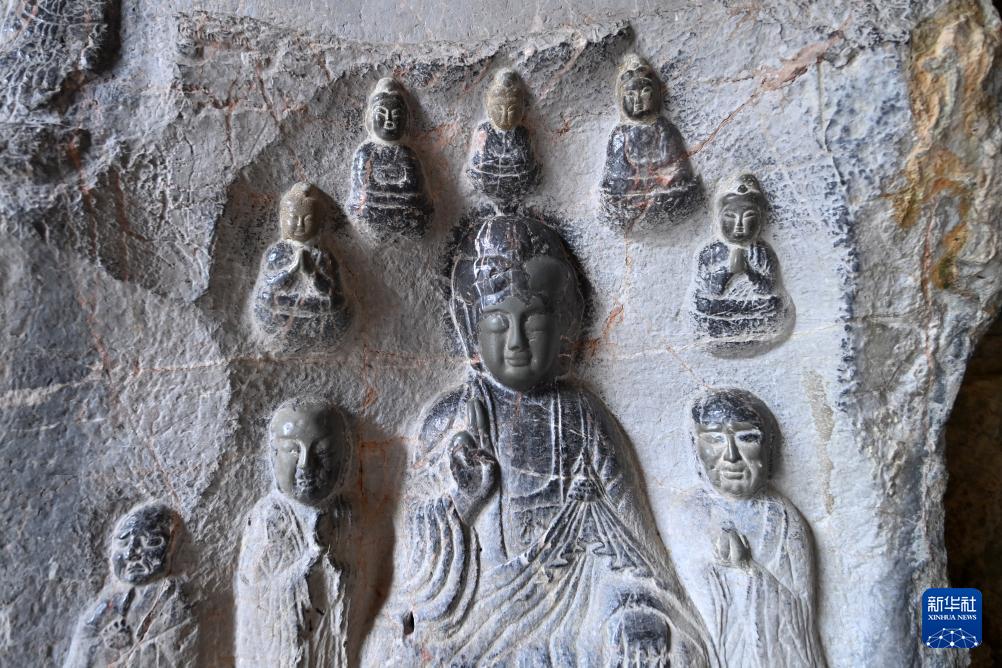 这是10月25日拍摄的广西桂林市叠彩山风洞内的佛像。