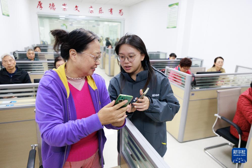 10月28日,在贵州省贵阳市观山湖区世纪城街道观山小区,老年人在老年大学内学习手机视频拍摄技巧。