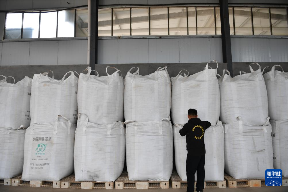 10月30日,邱彬将烘干后的稻谷装袋。