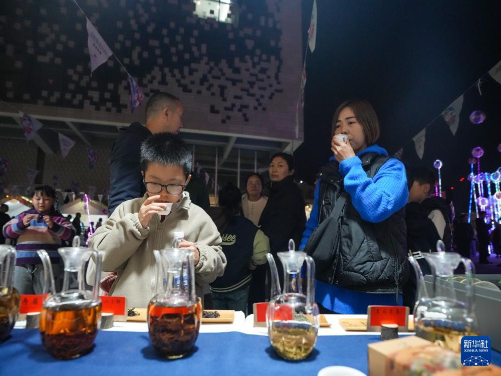 11月1日,在四川省眉山市彭山区,游客在非遗市集品尝当地特色彭山武阳茶。