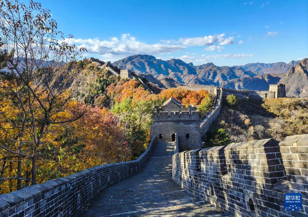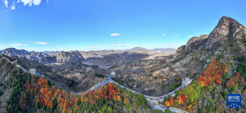 晚秋时节,位于天津市蓟州区的黄崖关长城,山峦间的彩叶层层叠叠、绚烂缤纷,将浓烈的秋意泼洒在长城内外。