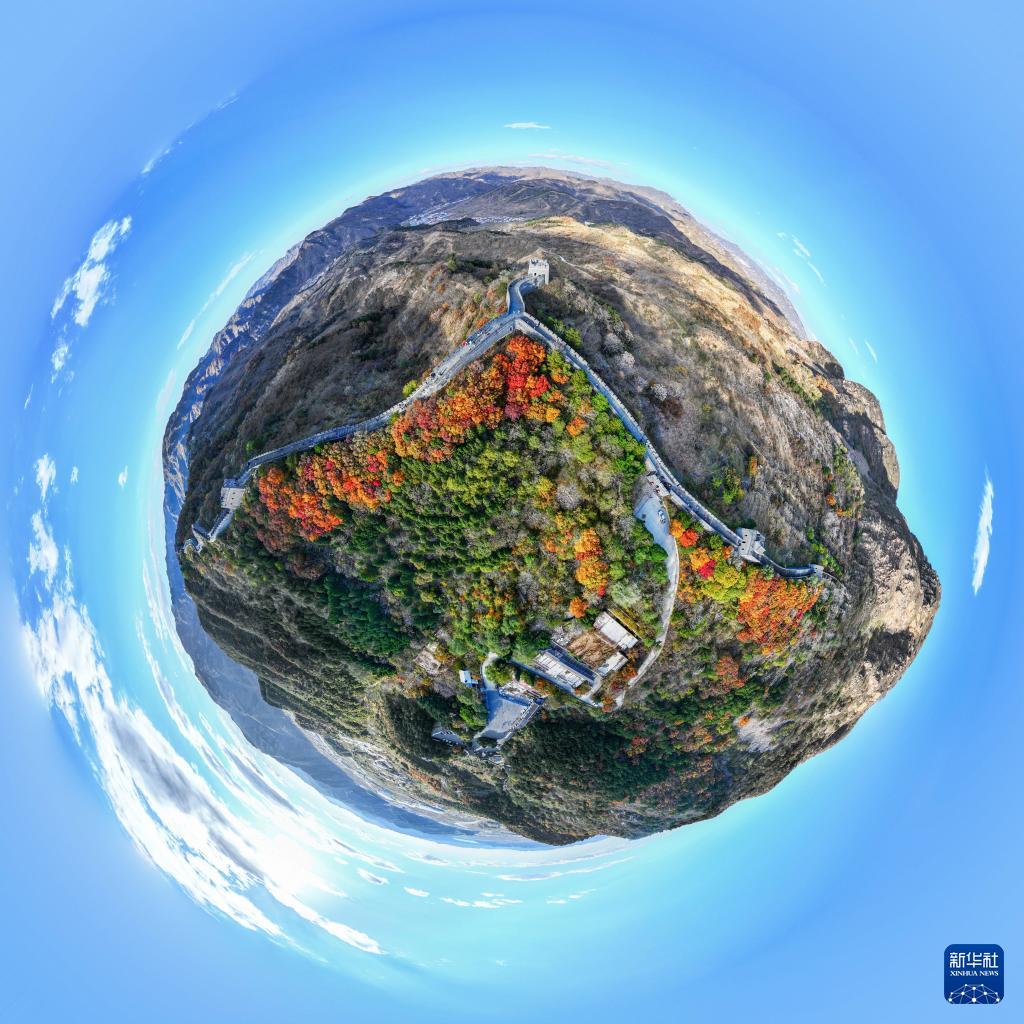11月1日拍摄的黄崖关长城秋景(无人机全景照片)。