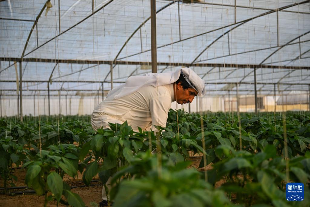 10月31日,在科威特艾哈迈迪省沃夫拉地区,农场主萨里·阿兹米查看大棚中的蔬菜。