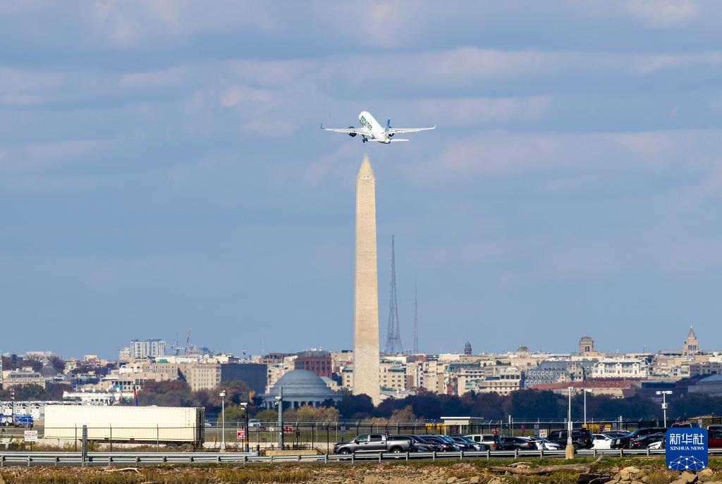 11月1日,一架飞机从美国弗吉尼亚州阿灵顿的里根国家机场起飞。