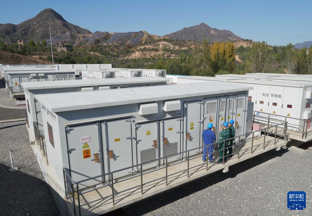 11月2日,国网平山县供电公司的工人在辖区百兆瓦级储能电站巡检。
