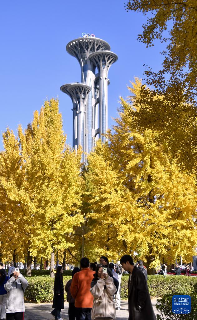 11月2日,游客在奥林匹克公园观赏银杏。
