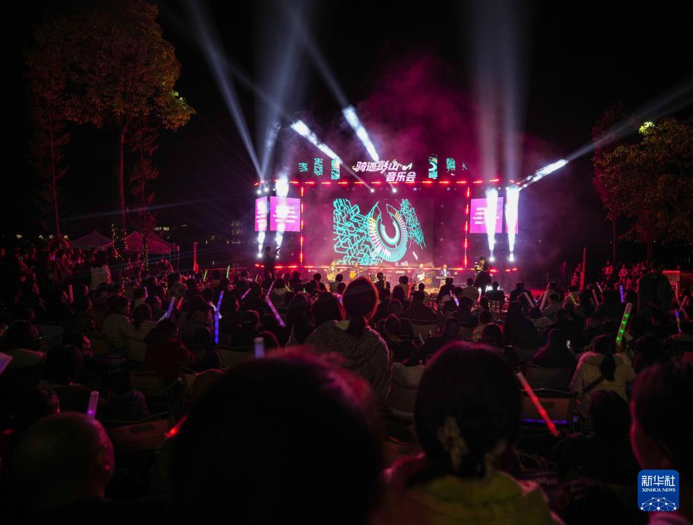 11月1日,在四川省眉山市彭山区,乐队在主题音乐会上演出。