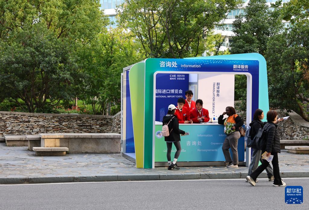 11月3日,志愿者在国家会展中心(上海)的一个咨询处内工作。