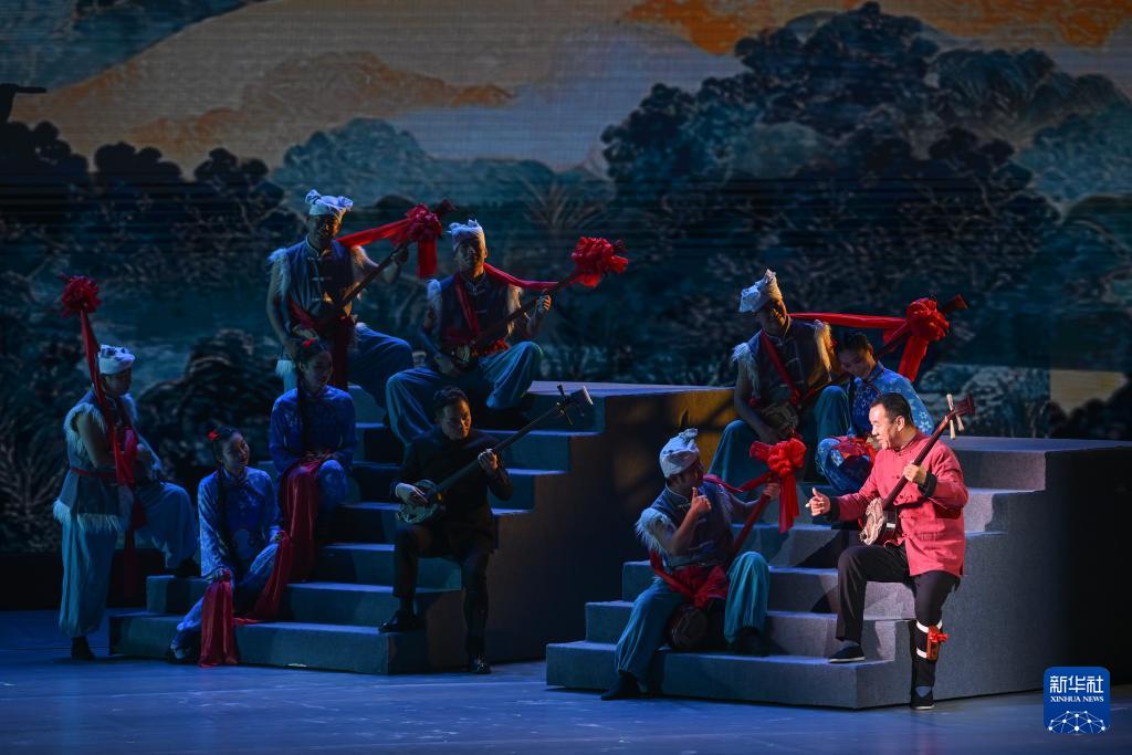 11月4日,在重庆群星剧院,演员表演陕北说书《取经西行有模样》。