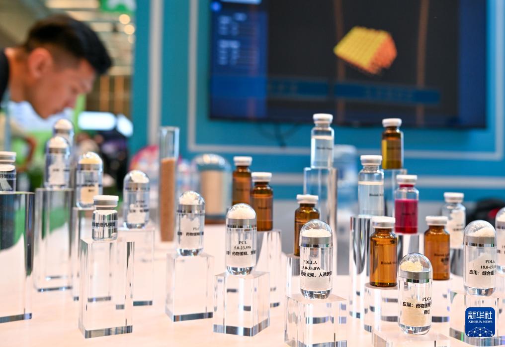 11月3日,观众在广交会展馆捷诺飞生物展台观看生物3D打印的样品。