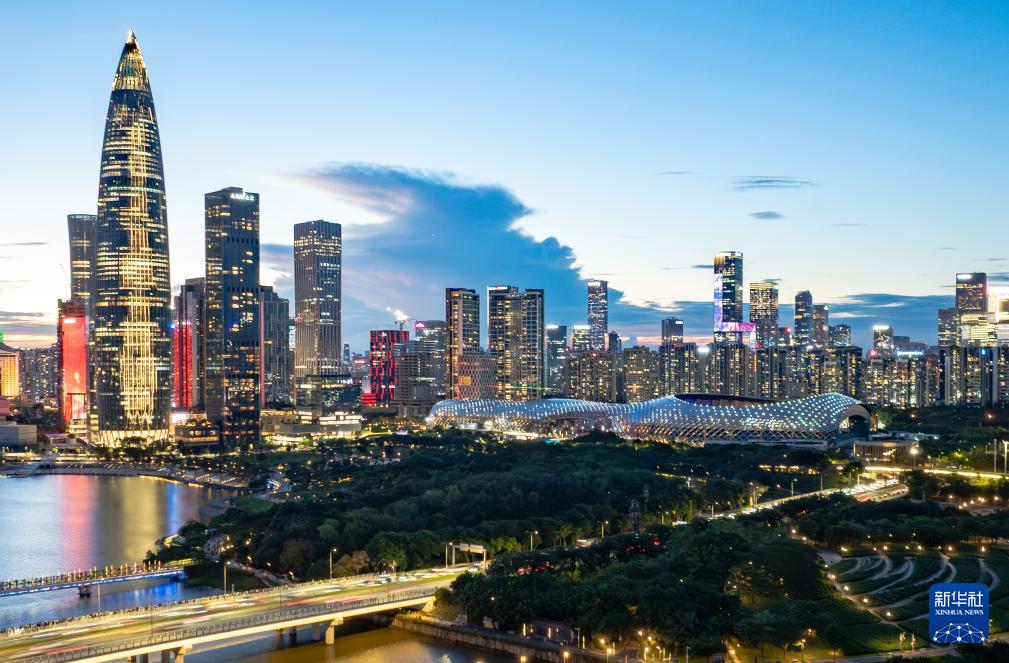 深圳湾体育中心以及周边道路(6月25日摄,无人机照片)。全运会马拉松比赛从深圳湾体育中心周边道路起跑,以深圳湾大桥为纽带,横跨深圳、香港两地,最后回到深圳湾体育中心。