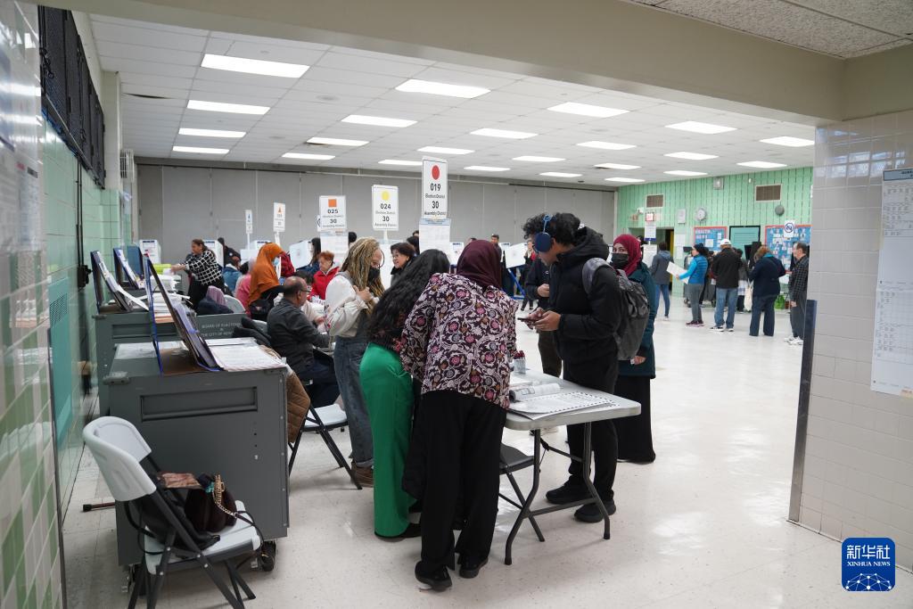 11月4日,选民在美国纽约市的一个投票站内投票。