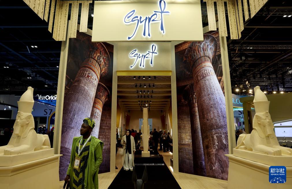11月4日,在英国首都伦敦,人们在2025年英国伦敦世界旅游交易会埃及展区参观。