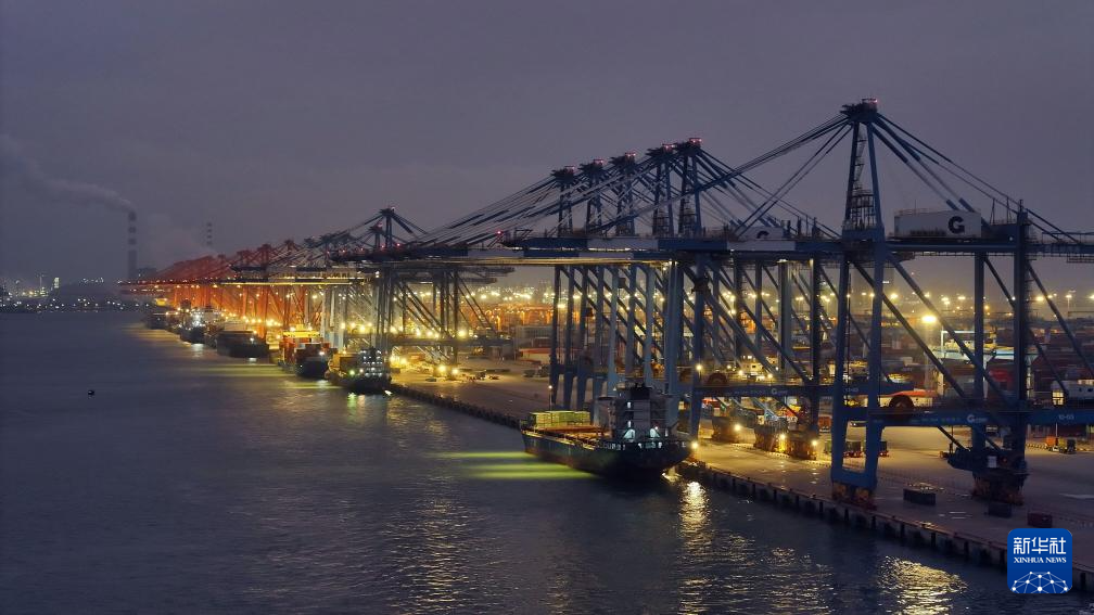 夜幕下的广西钦州港(11月5日摄,无人机照片)。