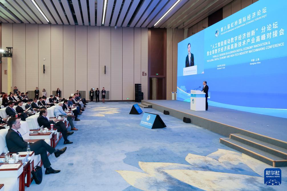 当日,第八届虹桥国际经济论坛“人工智能驱动数字经济创新”分论坛暨全球数字经济和高新技术产业高峰对接会在国家会展中心(上海)举行。