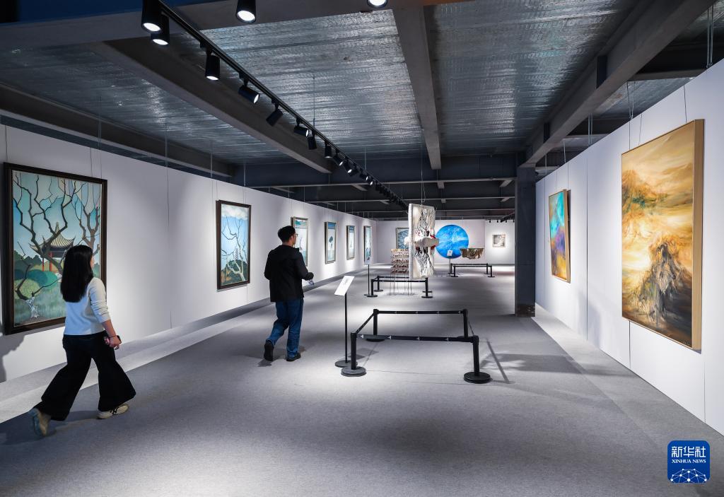 11月5日,游客在濮院时尚古镇的互联网生活嘉年华观看艺术展。