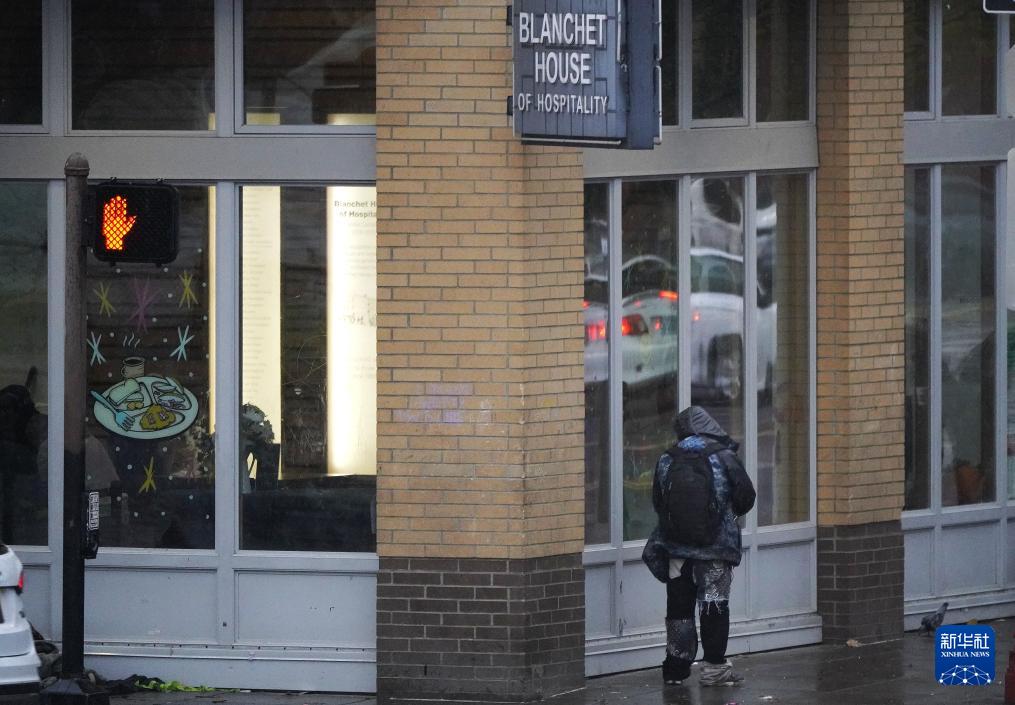 11月5日清晨,在美国俄勒冈州波特兰的深秋寒意中,无家可归者走在街头。