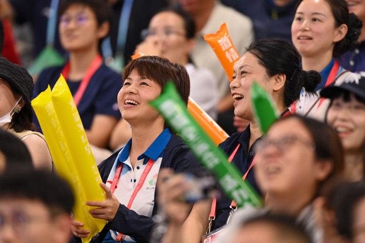 10月16日,观众观看第十五届全运会射击女子10米气手枪决赛。新华社记者 丁磊 摄