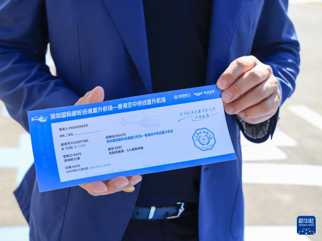 11月6日,乘客在深圳国际邮轮母港展示自己的直升机票。