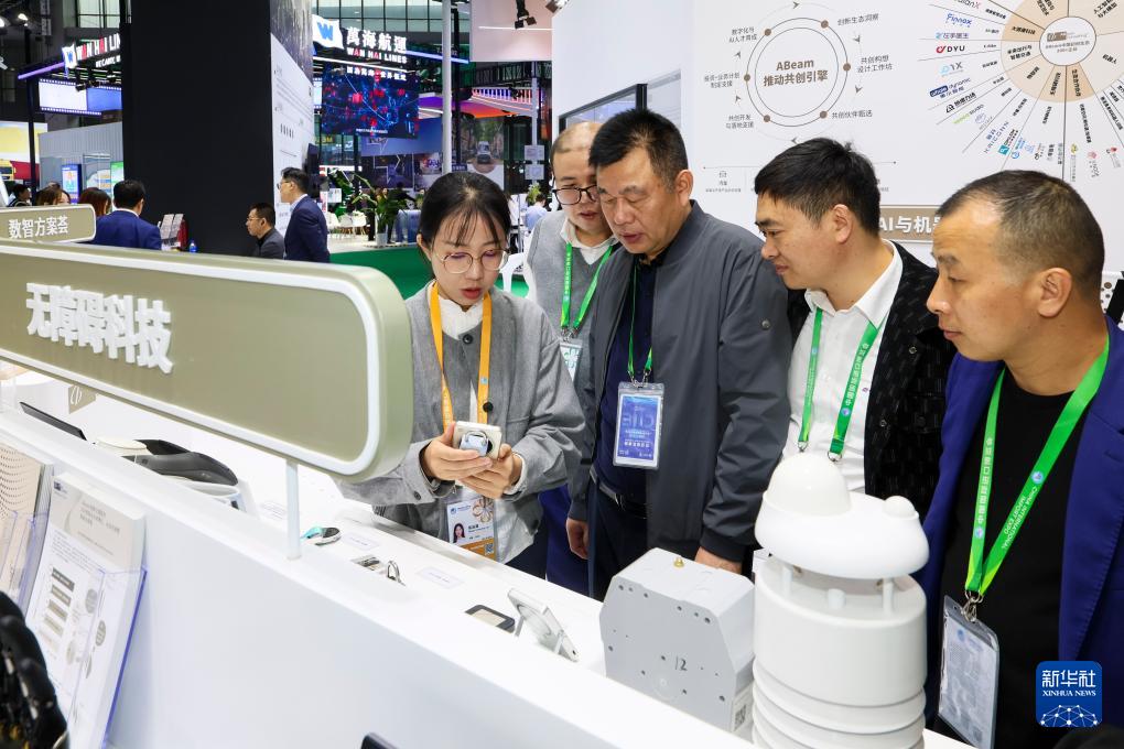 11月9日,在第八届进博会服务贸易展区德硕展台无障碍科技区,参展商为观众介绍无源NFC智能挂锁。