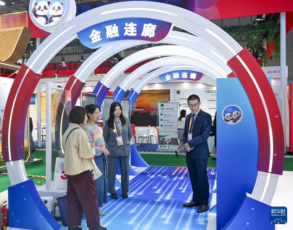 11月9日,人们在第八届进博会服务贸易展区浦发银行展台体验互动装置。