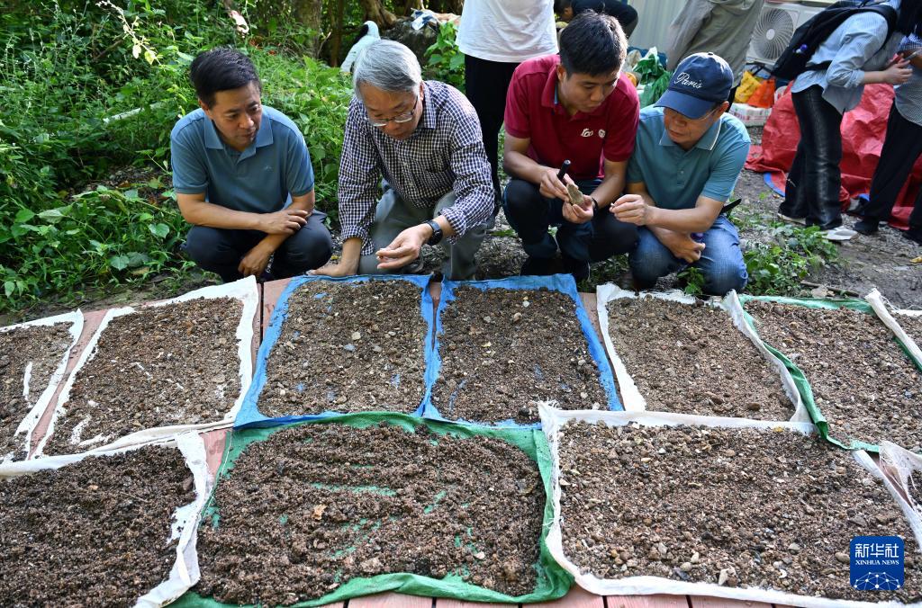 11月8日,考古专家对三亚落笔洞遗址出土土壤进行筛选。