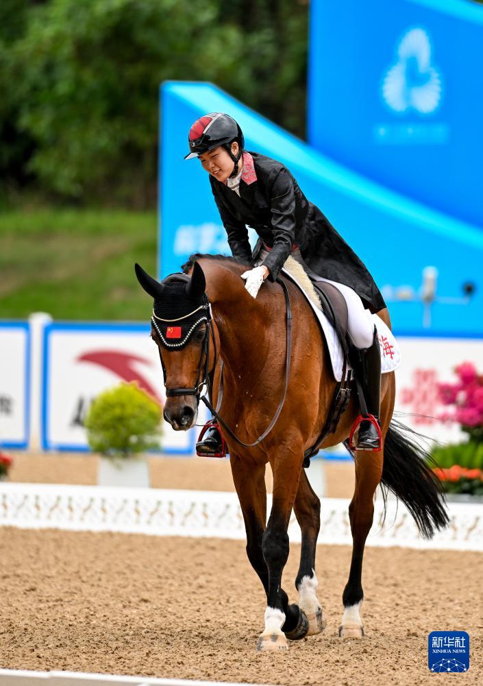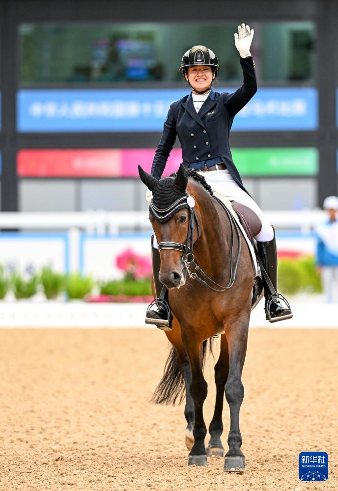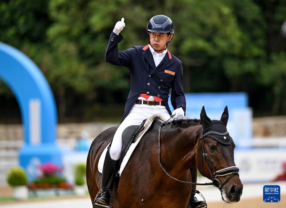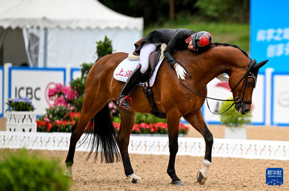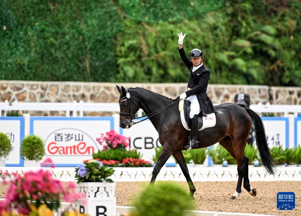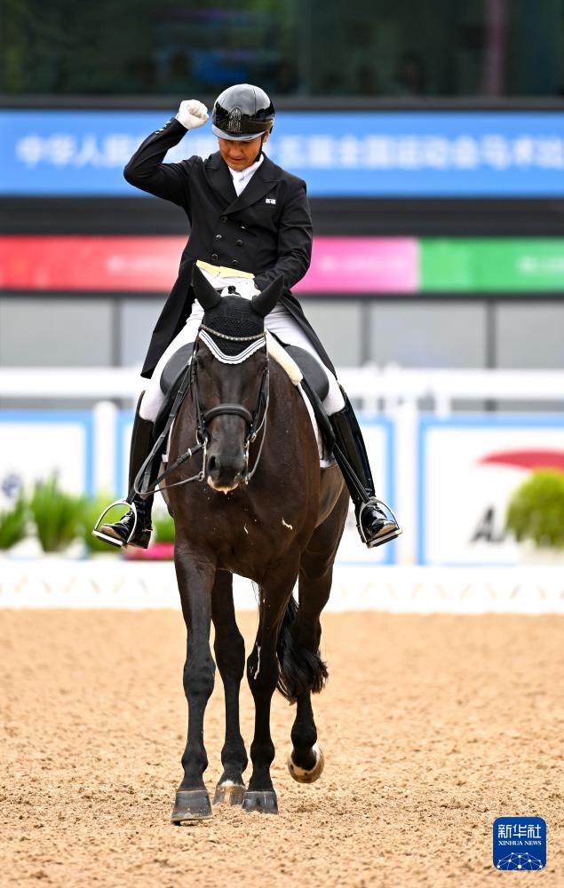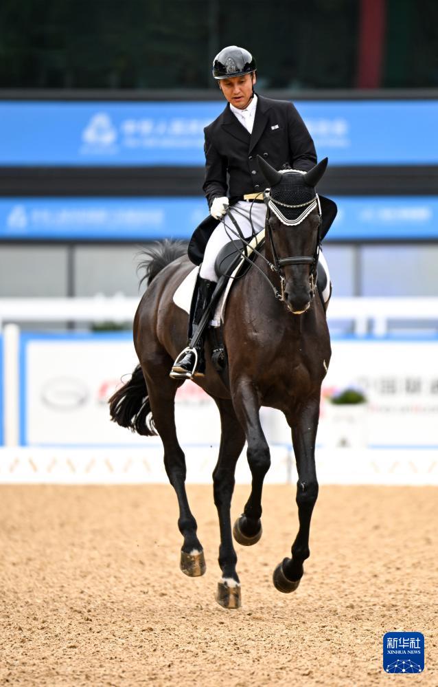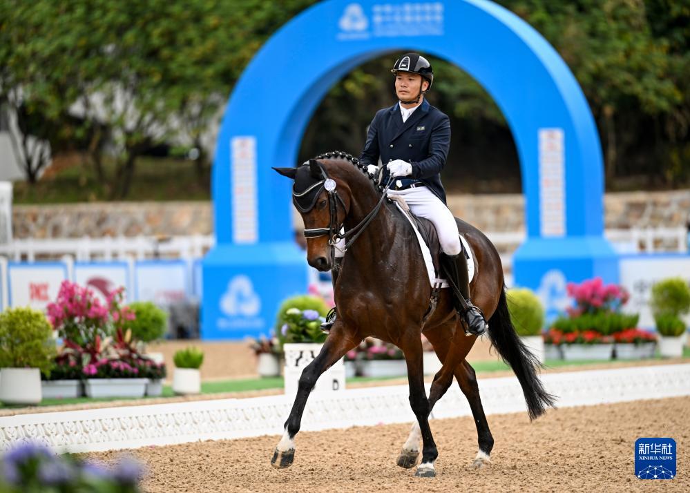 当日,第十五届全国运动会马术比赛盛装舞步个人赛预赛在广东深圳光明国际马术中心举行。