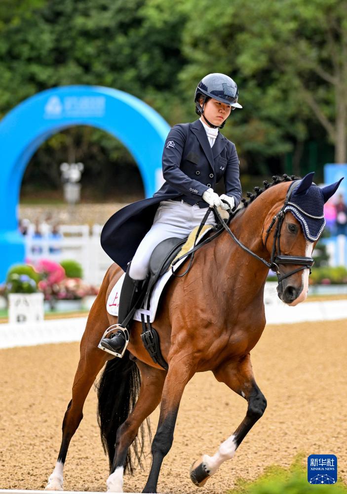 11月11日,香港队选手何苑欣和马匹“Lord Sandro K”在比赛中,她在预赛中排名第五。