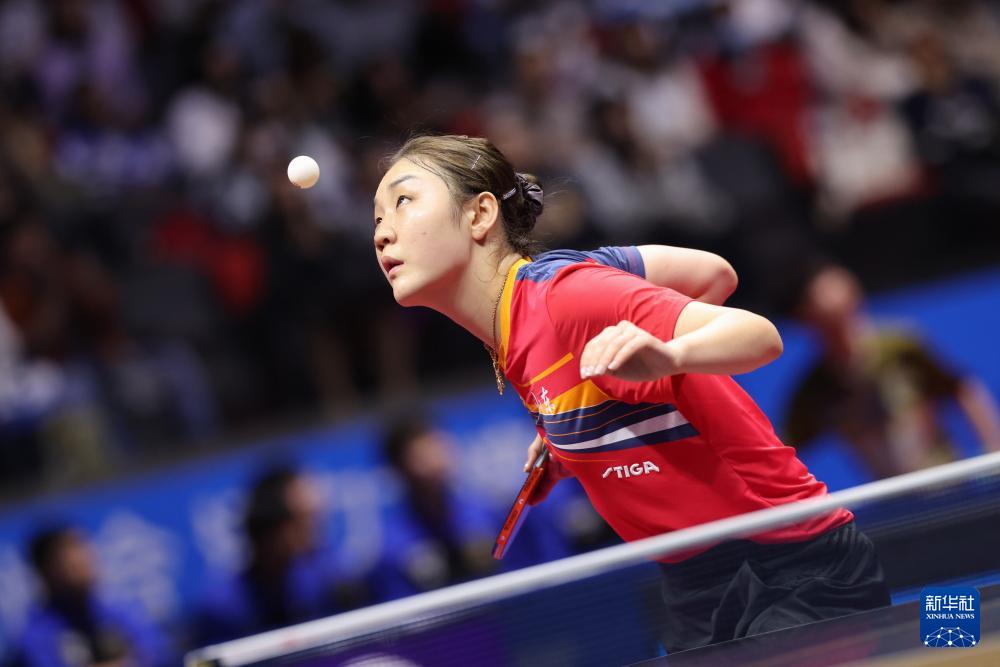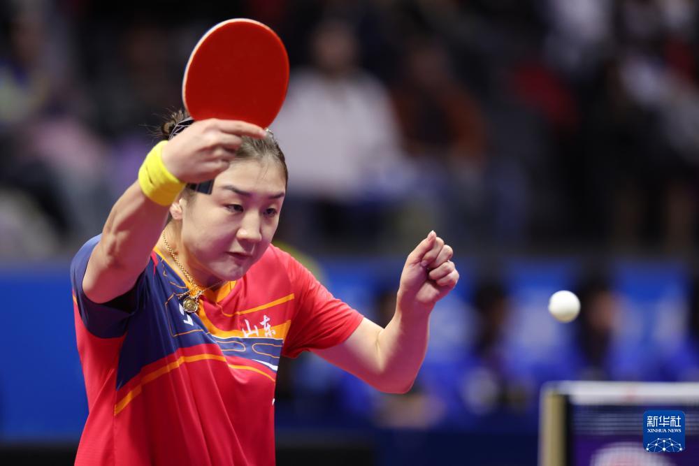 11月11日,陈梦在比赛中回球。