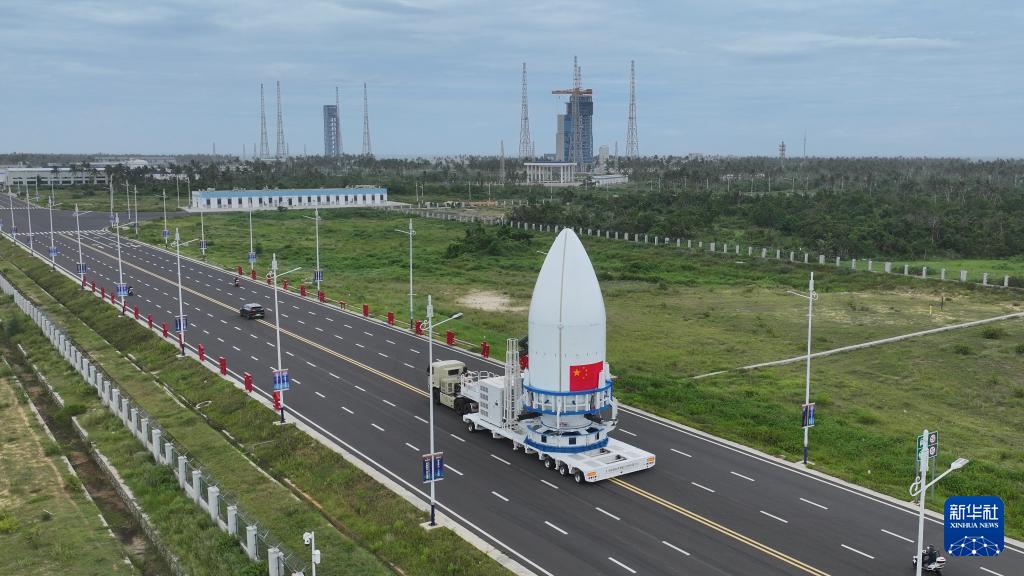 这是11月11日拍摄的长八甲遥五火箭整流罩转运现场(无人机照片)。