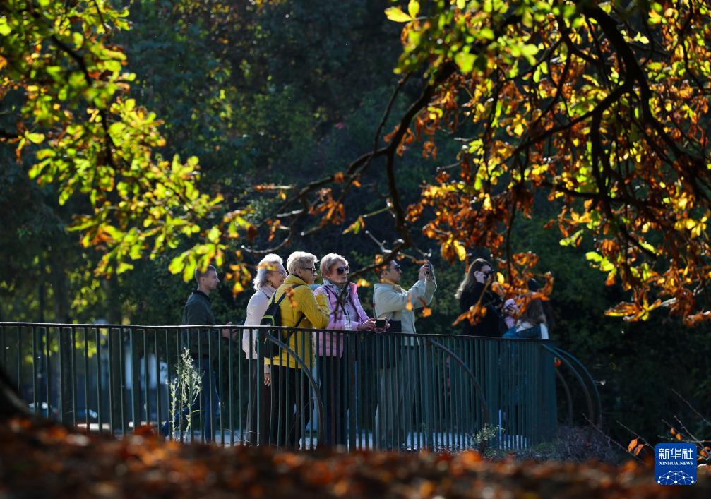 11月5日,在意大利米兰,人们在森皮奥内公园赏秋。