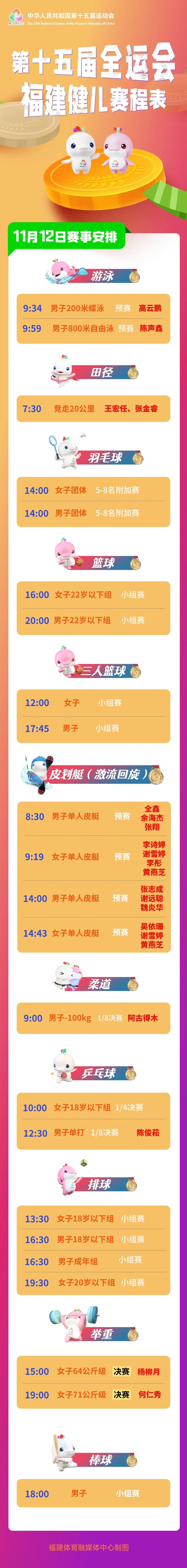 全运日历丨速戳!11月12日福建健儿赛程表来了
