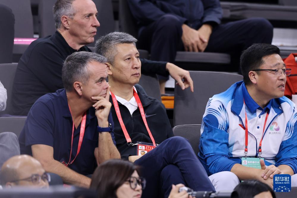 11月12日,中国男篮主教练郭士强(左二)在现场观赛。