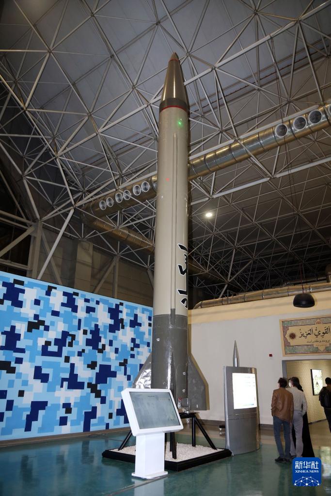 11月12日,民众在伊朗首都德黑兰举办的展览上参观新型导弹。新华社记者 沙达提 摄
