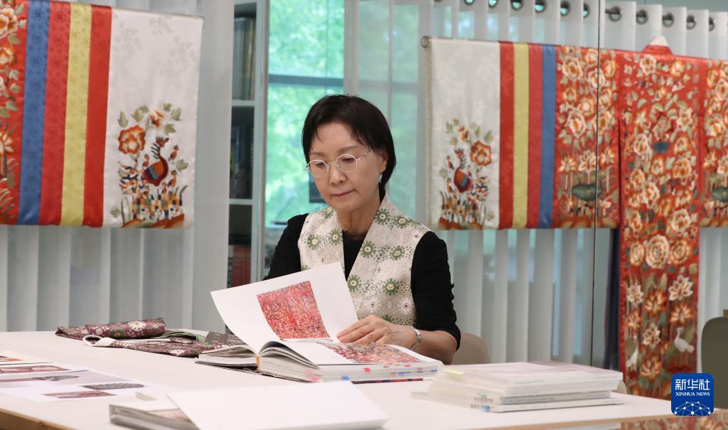 10月14日,在韩国首尔一家名为“完制工坊”的研究机构,责任教授赵孝淑在研究韩服样式。“完制工坊”的研究人员以历史文献与实物遗存为基础,致力于复原不同时期的韩服形制,从织料染色到服装结构都力求精准。