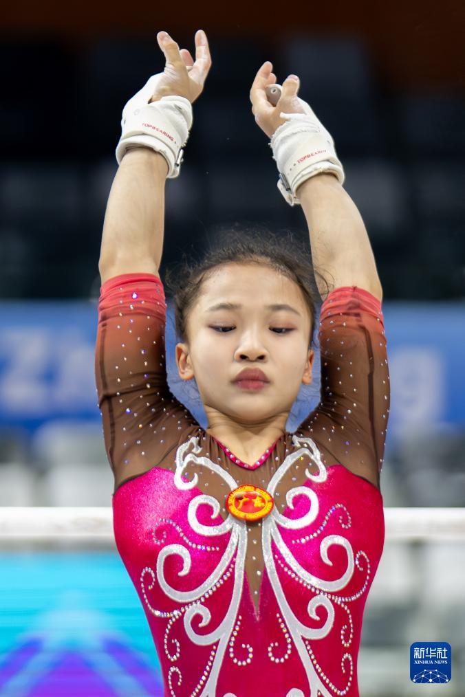 当日,第十五届全国运动会体操项目女子高低杠决赛在肇庆举行。
