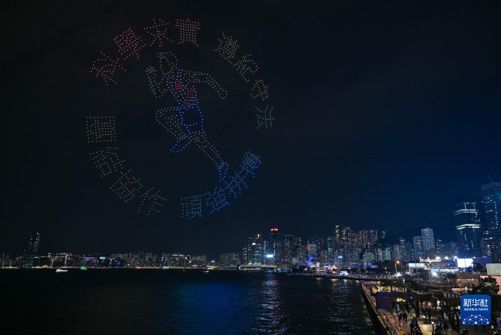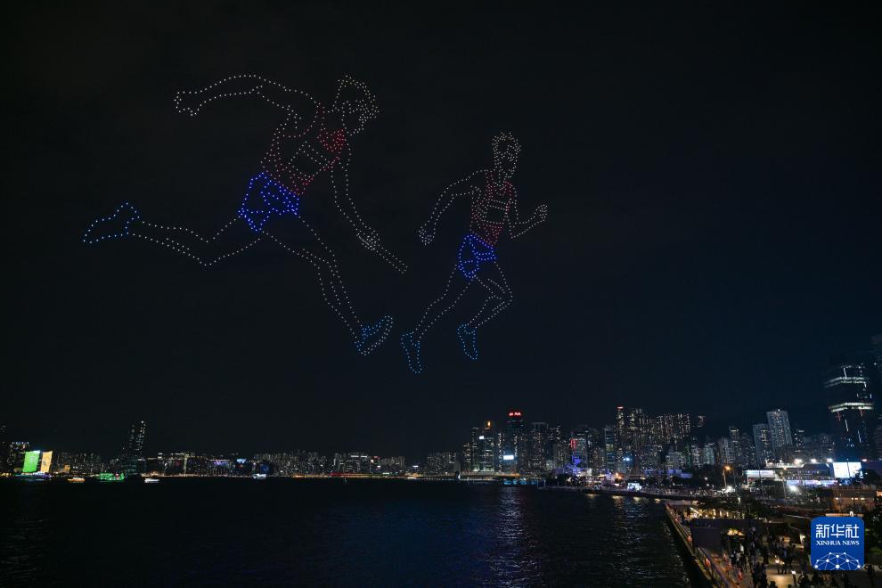 香港举行“体育力量 闪耀香江”大型无人机表演