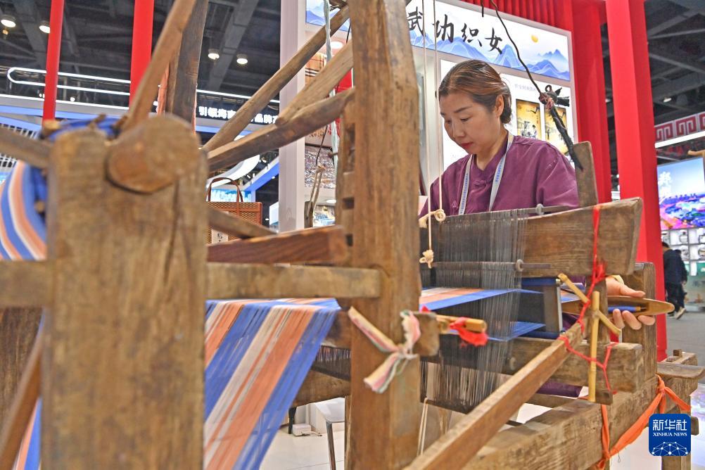 11月18日,手艺人在第三届全国劳务协作暨劳务品牌发展大会上展示织绣技艺。