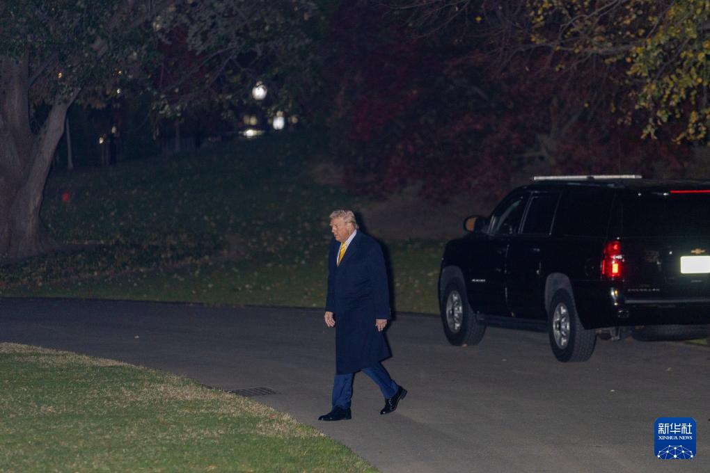 11月14日,在美国首都华盛顿白宫,美国总统特朗普在南草坪准备登机。