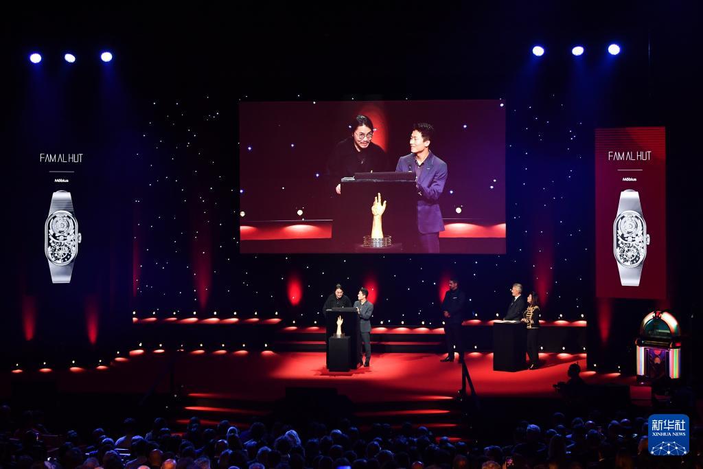 11月13日,在瑞士日内瓦,中国制表品牌“北落师门”创始人代欣言(中左)在颁奖典礼上发言。