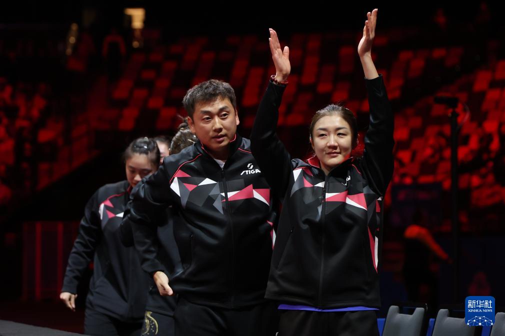 11月19日,山东队选手陈梦(右)在比赛后向观众致意。