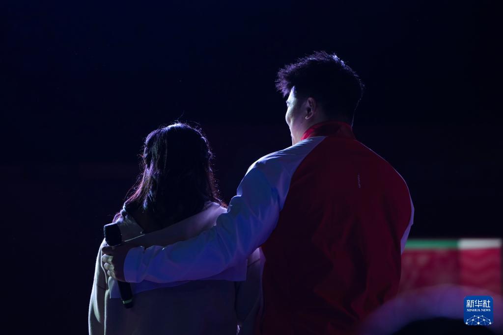 11月19日,天津队选手刘焕华(右)在赛后向女友求婚。