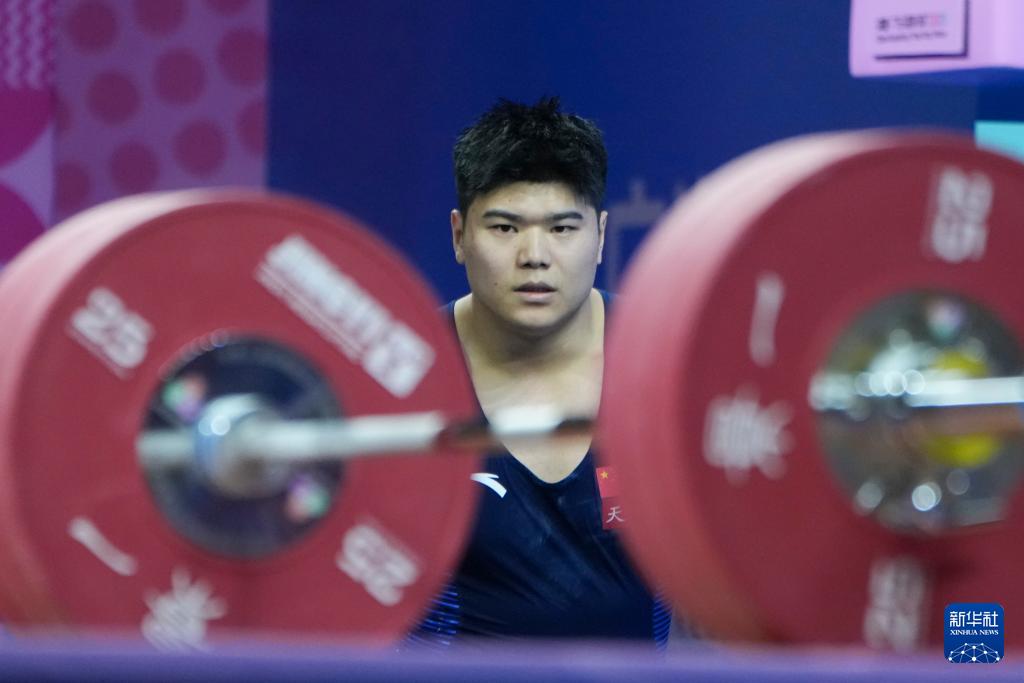 11月19日,辽宁队选手邹元清在抓举比赛中。最终,他获得季军。