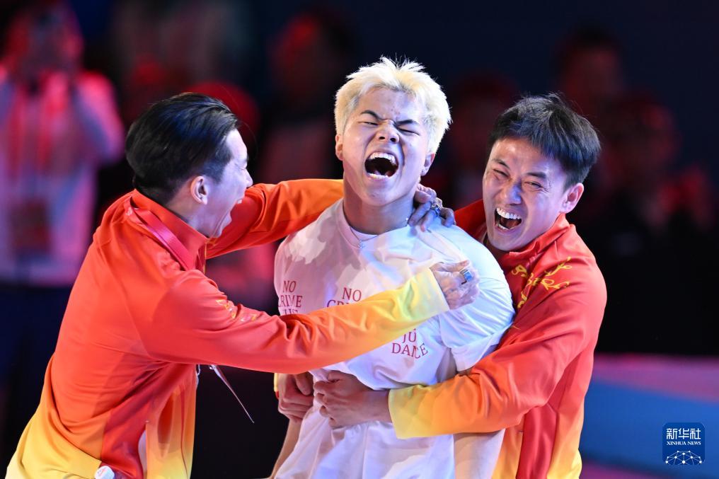 11月19日,湖北队选手王瑞苗(中)庆祝获胜。