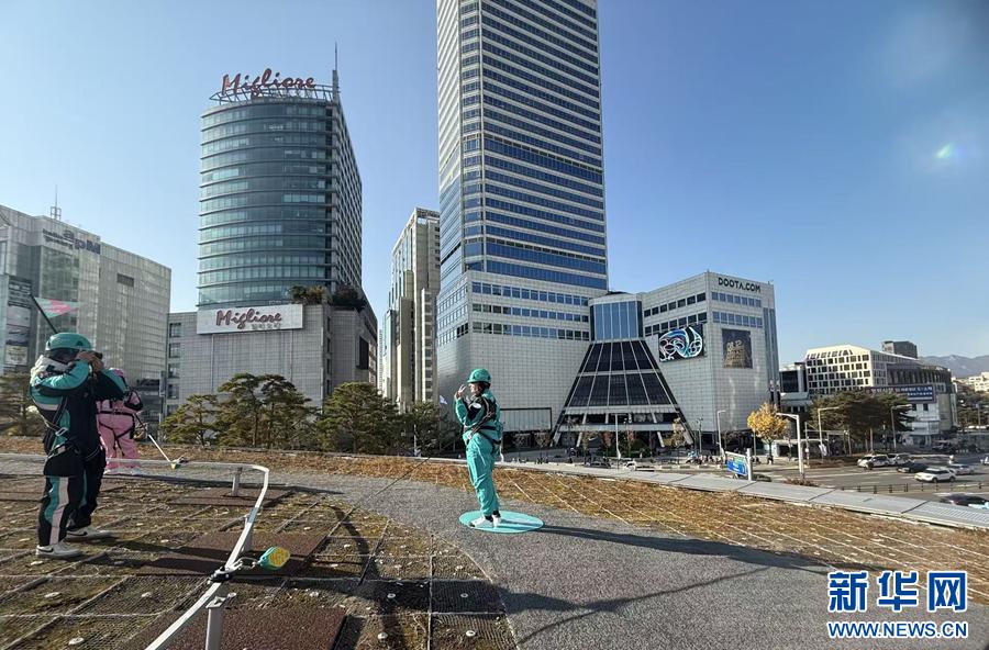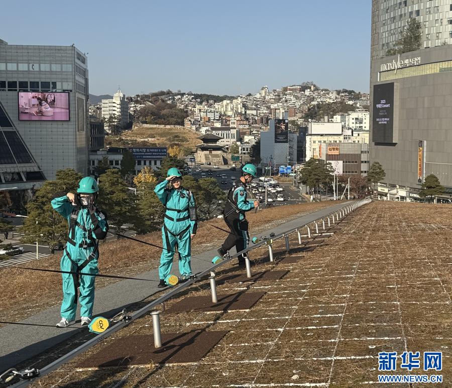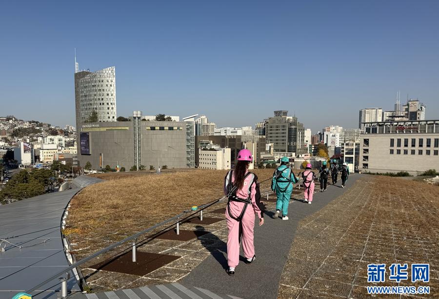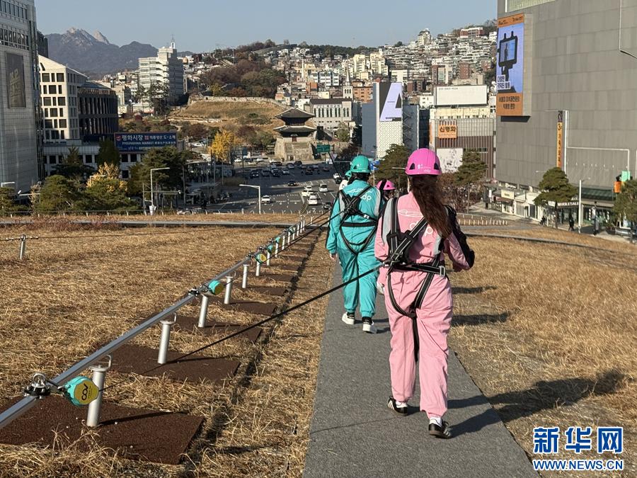 11月19日,游客在韩国首尔东大门设计广场屋顶上体验“DDP屋顶之旅”。记者姚琪琳 摄