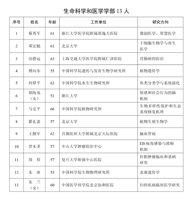 关于公布2025年中国科学院院士增选当选院士名单的公告