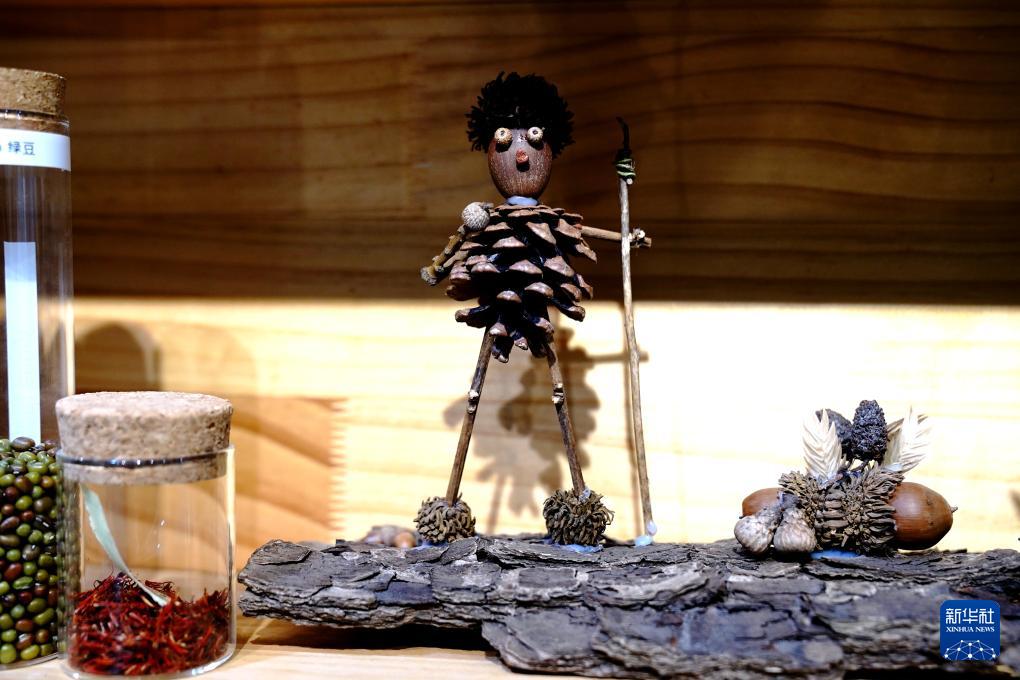 11月19日在辰山中心植物种子标本墙拍摄的种子手工小品。