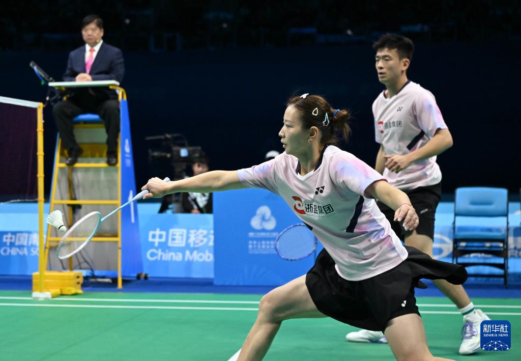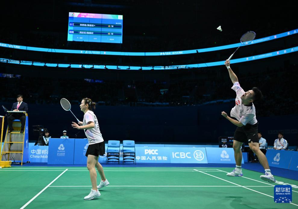 当日,在广东深圳举行的第十五届全国运动会羽毛球混合双打决赛中,浙江队组合郑思维/黄雅琼2比0战胜湖南队组合周志宏/魏雅欣,获得冠军。