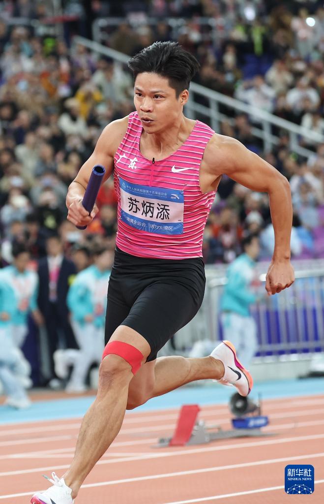 11月20日,广东队选手苏炳添在比赛中。